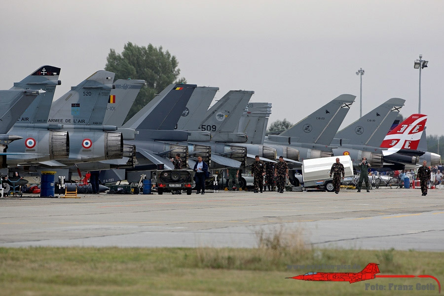 Eurofighter EF2000 Typhoon, C.16-30 / 11-10, Spanish Air Force, BAe Harrier GR.7A, ZD376 / 24A, Royal Air Force, Saab JAS 39C Gripen, 39272 / 272, Swedish Air Force, Boeing / MDD F/A-18C Hornet, HN-424, Finnish Air Force, F-16AM Fighting Falcon, FA131, Belgian Air Force, Dassault Mirage 2000C, 17 / 5-OZ, French Air Force, Boeing / MDD C-17A Globemaster III, 05-5140, United States Air Force (USAF), F-16D Block 50 Fighting Falcon, 94-1563, Turkish Air Force, F-16AM Fighting Falcon, J-640, Royal Netherlands Air Force